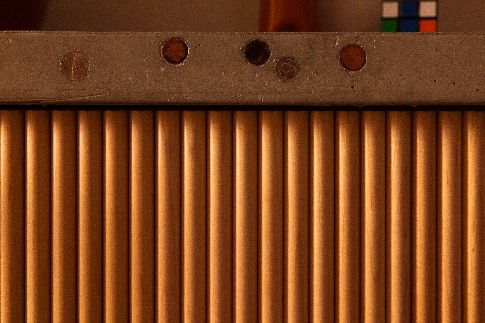 The resulting design draws inspiration from a Mad Men–era Mid-Century Modern aesthetic with a Space-Age twist, featuring restored period furnishings, custom walnut cabinetry by a local craftsman, and layered textures throughout. In the bath, curved partitions, mosaic tile, custom terrazzo, and a restored MCM infinity mirror create a striking, immersive experience that completes the transformation.