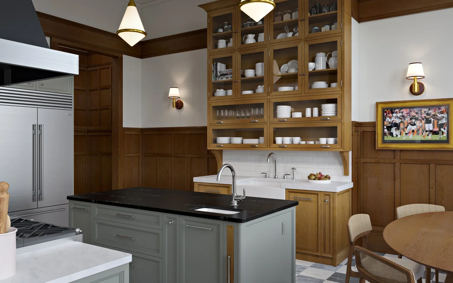 In this Rittenhouse Square renovation, homeowners Margaux and Kevin Pelegrin entrusted our team with restoring a grand historic residence while adapting it for modern living. One of the kitchen’s defining elements was an original heirloom crockery, historically used as the workhorse of early 20th-century kitchens.