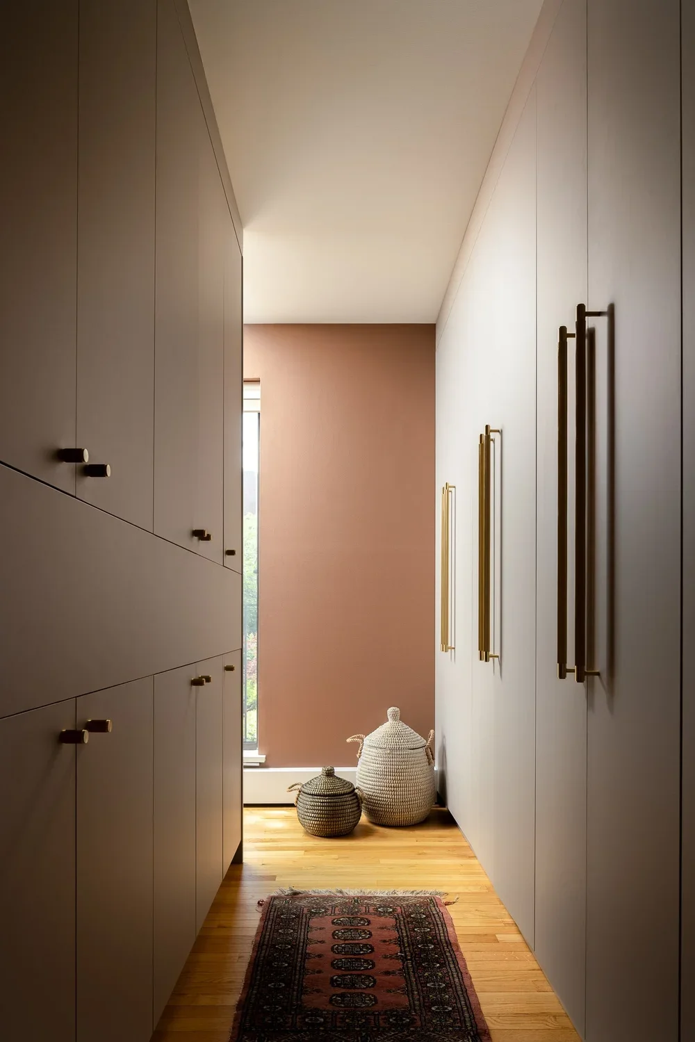 Custom wardrobe cabinetry maximizing storage within a Philadelphia rowhome footprint.